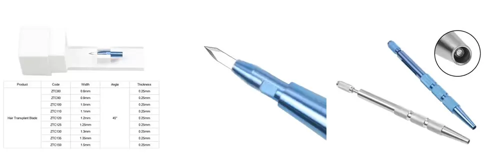 0,7-1,2 mm, stal nierdzewna 316, narzędzie do przeszczepu włosów metodą FUE, do ekstrakcji mieszków włosowych długich